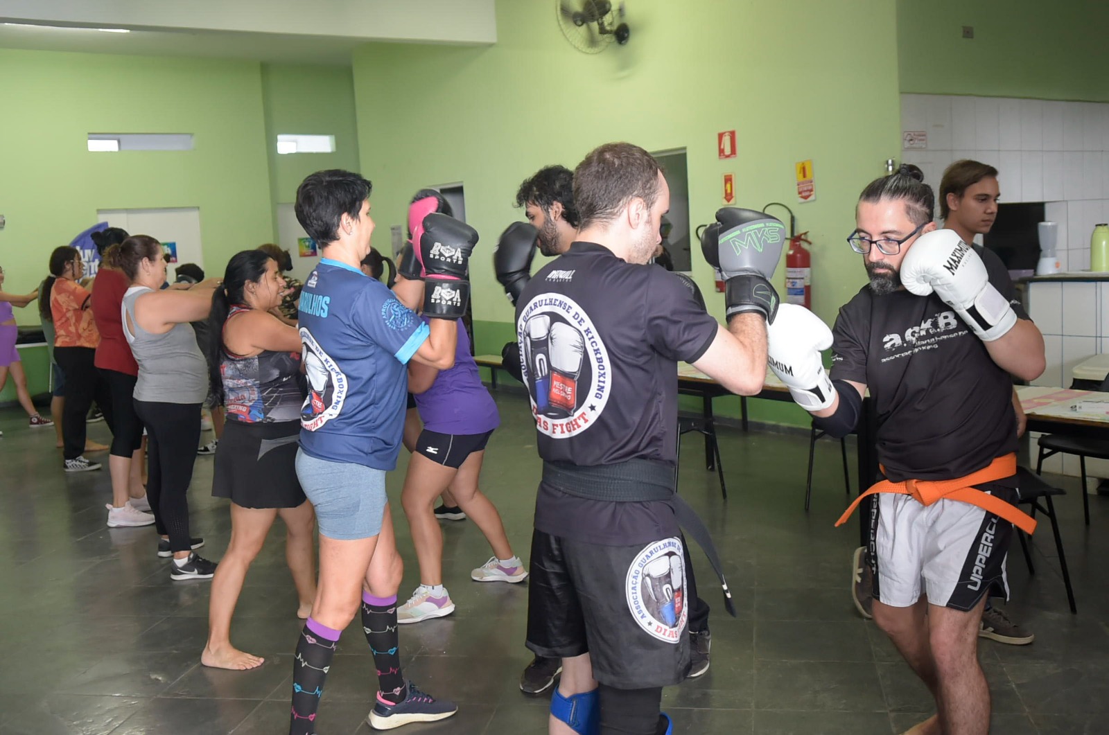Aos 50 anos, a professora Claudia Alessandra Fagundes participou nesta segunda-feira (24) de sua terceira aula de kickboxing na sede da Subsecretaria da Juventude, no Gopoúva. Realizada para uma turma de 25 alunos, a prática combina exercícios de fortalecimento corporal e resistência cardiovascular e é oferecida gratuitamente pela administração municipal para todas as idades e ambos os sexos, uma vez na semana, por uma hora.