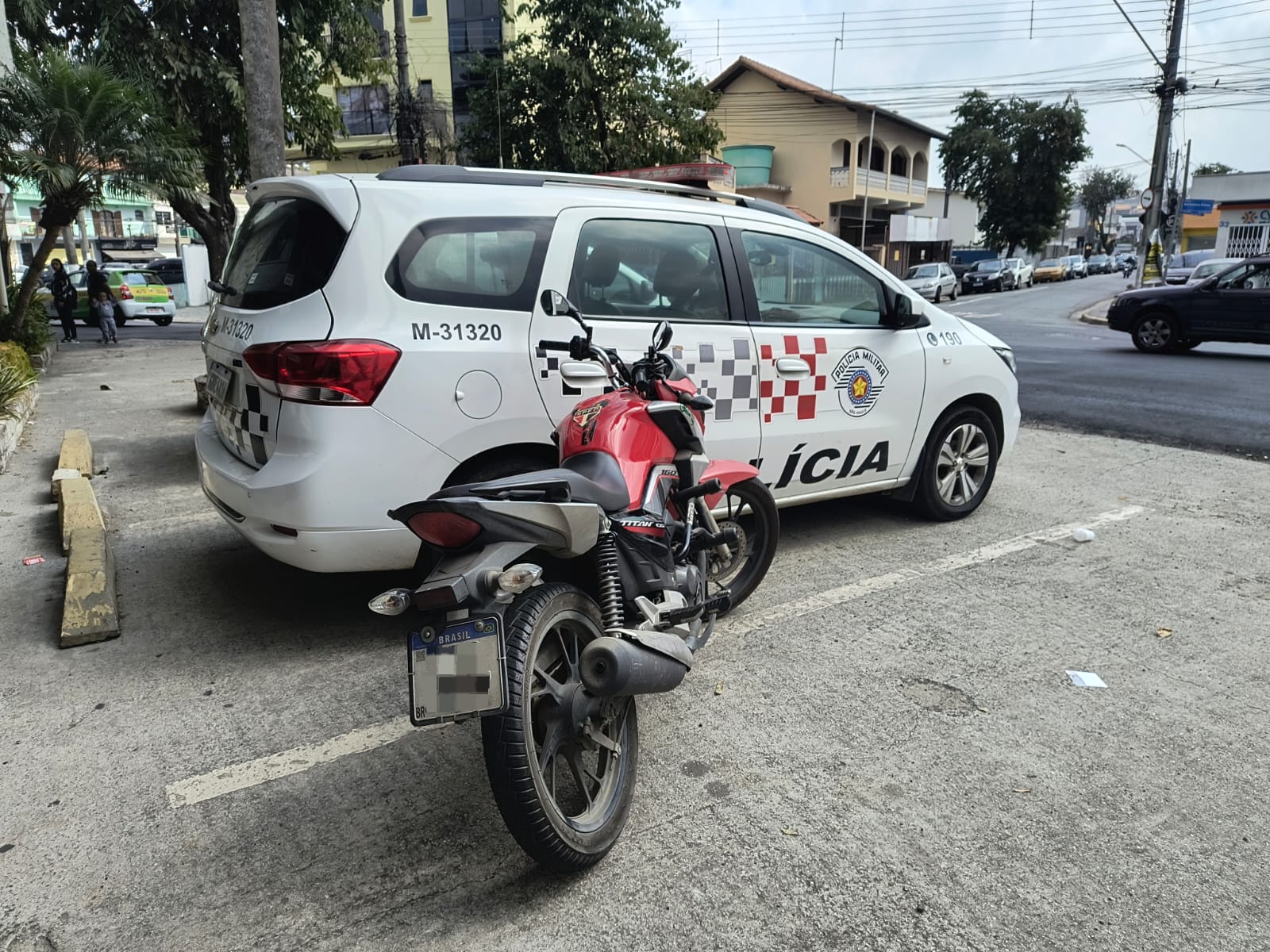 Com o apoio da viatura da Delegada, os policiais localizaram uma motocicleta na Rua Fernanda Magi. Durante patrulhamento na Rua José Bueno, dois suspeitos foram abordados enquanto empurravam uma Honda CG 150. Apesar de não haver queixa formal sobre o veículo, os homens foram encaminhados à Delegacia de Santa Isabel.