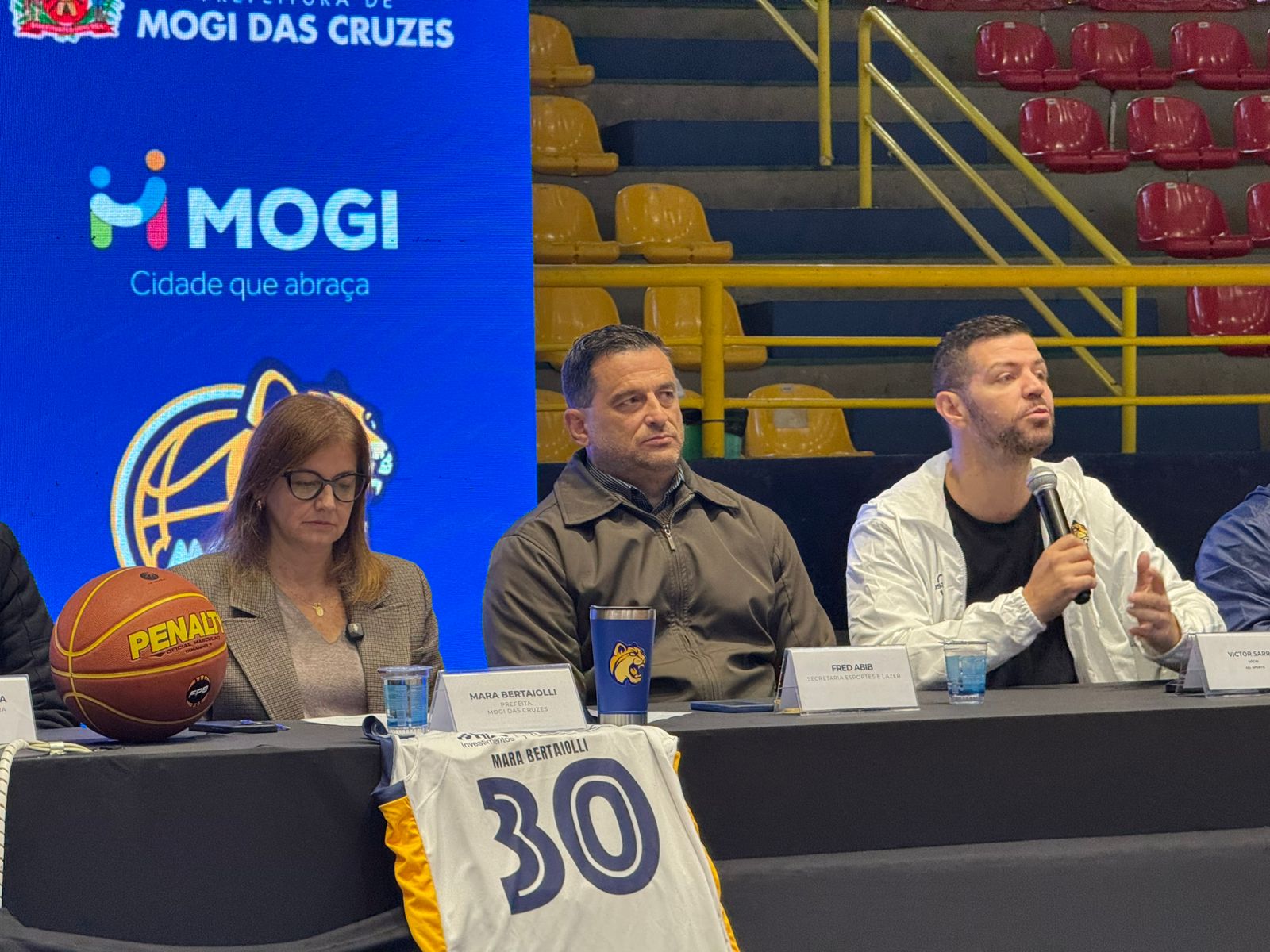 A Prefeitura de Mogi das Cruzes e a Associação Mogi Basquete realizaram, na manhã desta sexta-feira (1º/08), uma entrevista coletiva no Ginásio Hugo Ramos para oficializar a retomada da parceria entre o poder público municipal e o Mogi Basquete. A coletiva também marcou o anúncio do apoio da iniciativa privada, com a chegada da All Sports como nova parceira do projeto.