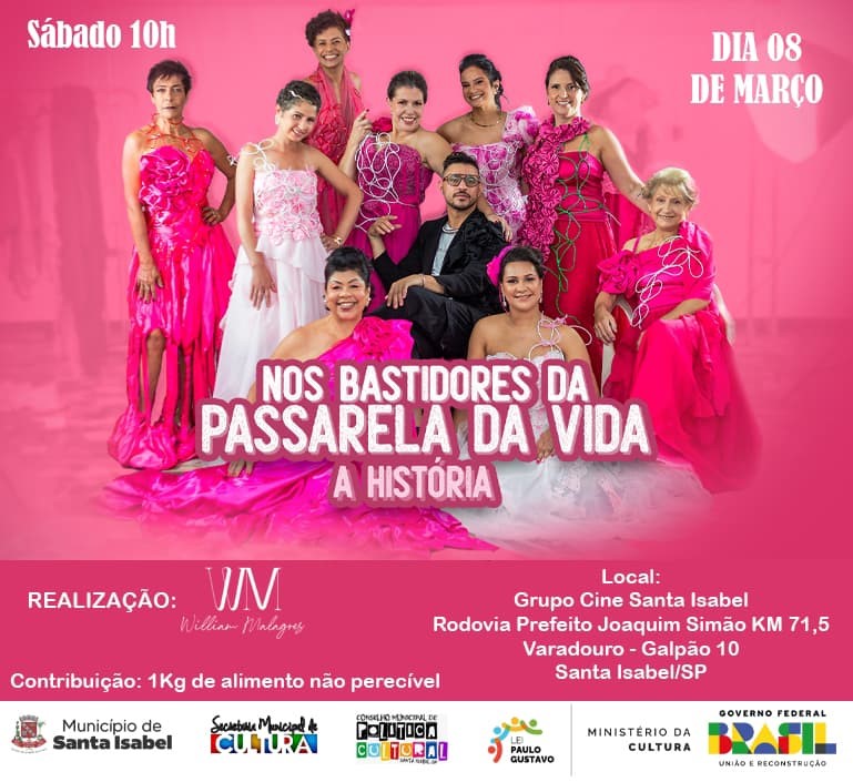 No dia 8 de março, Santa Isabel será palco de um evento emocionante e inspirador em celebração ao Dia Internacional da Mulher. O Grupo Cine Cinema receberá a pré-estreia do documentário “Nos Bastidores da Passarela da Vida – A História”, idealizado pelo renomado estilista William Malagres.